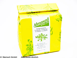 Almased Vitaltee ist ein wohlschmeckender Frühstücks- und Abendtee, der ideal die Almased- Diät unterstützt. Er enthält einheimischen Weißdorn, Holunder, Majoran, Waldmeister und Sellerie, die in der Mischung eine wohltuende Wirkung entfalten. Diese Inhaltsstoffe stärken den Magen und unterstützen die Verdauung. Außerdem wirken sie Kreislauf stabilisierend und regen die Nierentätigkeit an. Auch Verkrampfungen können mit Hilfe von Almased Vitaltee gelöst werden.
