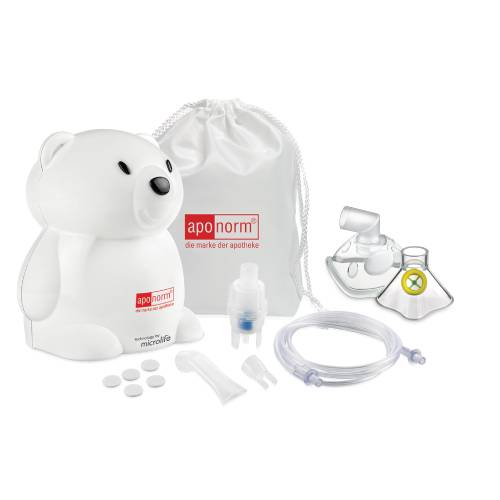 Der aponorm® Inhalator Compact KIDS, im kinderfreundlichen Eisbären-Look, hilft Ihnen spielerisch bei der täglichen Inhalation Ihres Kindes, denn er ist speziell an die Bedürfnisse von kleinen Patienten angepasst: