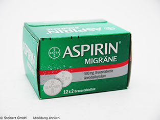 Die Aspirin Migräne Brausetabletten werden zur Behandlung von migränebedingten Kopfschmerzen angewendet. Die Brausetabletten enthalten den Wirkstoff Acetylsalicylsäure und die Hilfsstoffe Pufferstoffe und Brausesalze. Durch die Pufferstoffe lösen sich die Tabletten schnell auf, wodurch der Wirkstoff vom Körper rascher aufgenommen werden kann. Die körpereigene Bildung der Prostaglandine wird gehemmt, so dass die Schmerzrezeptoren nicht mehr so schmerzempfindlich sind. Die Aspirin Migräne Brausetabletten wirken sehr schnell und sind im Allgemeinen sehr gut verträglich.