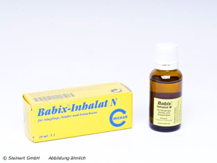 Das Babix Inhalat N wird bei  Erkrankungen der oberen Luftwege, Bronchitis und grippale Infekte bei Säuglingen, Kindern und auch Erwachsenen eingesetzt. Die reinen ätherischen Öle aus Eukalyptus und Fichtennadeln befreien die Atemwege,  lösen den Schleim und erleichtern die Nasenatmung. Ein paar Tropfen von Babix- Inhalat N wird auf das Kleidungsstück in der Nähe der Atmungsorgane, wie Lätzchen oder Träger des Strampelhöschens getropft.