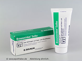 Die Braunovidon Salbe wird zur Behandlung von Wunden, welche unter anderem bei Verletzungen, Verbrennungen, Hautinfektionen und bei Hauterkrankungen entstehen können angewendet. Die Salbe enthält unter anderem den Wirkstoff Povidon-Jod. Das Jod wird beim Kontakt mit der Haut aus der Verbindung abgespalten. Das entstandene Jod ist dann in der Lage das Keimwachstum zu hemmen und Krankheitserreger abzutöten. Die Krankheitserreger verlieren also ihre Funktion und sterben ab. Das Povidon-Jod kann viele Bakterien, Pilze und Viren bekämpfen. Die Braunovidon Salbe stellt ein Jod-Depot her, welches verzögert Jod freigibt und so eine gleichbleibende Konzentration des wirksamen freien Jods über einen längeren Zeitraum gewährleistet.