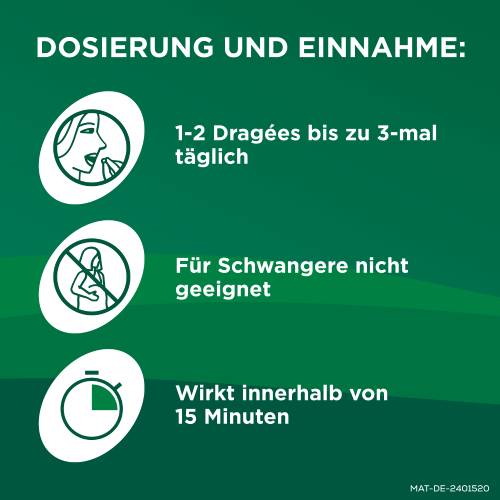 | Kinder ab 6 Jahren und Erwachsene | 1-2 Dragees | 3-mal täglich | morgens, mittags, abends, unabhängig von der Mahlzeit |