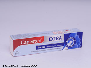Canesten® Extra Creme mit CanesTouch® Applikator beseitigt zuverlässig Pilzerkrankungen der Haut und Füße. Sie muss nur einmal täglich zum Einsatz kommen, zieht zügig in die Haut ein und ist als erste Fußpilztherapie mit Applikator in der Anwendung besonders präzise, hygienisch und komfortabel: Dank des Auftragens mit der Silikonspitze kommt es zu keinem direkten Fingerkontakt mit Infektion und Creme! Die Canesten® Extra Creme mit CanesTouch® Applikator lindert schnell Symptome wie Juckreiz, Rötungen und Brennen. Dank der Breitbandwirkung des Wirkstoffs Bifonazol werden alle relevanten Erreger bekämpft und zusätzlich Entzündungen gehemmt. Durch die wasserfeste Eigenschaft ist die Creme optimal für Sport und Freizeit geeignet.