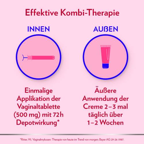 ·         praktische Kombination aus nur einer Vaginaltablette für den inneren und Creme für den äußeren Scheidenbereich