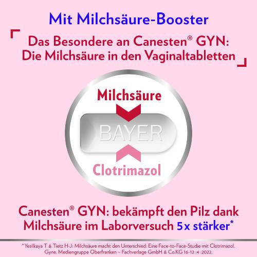Mit der Canesten® GYN Once Kombi steht Ihnen eine effektive Ein-Tages-Kombi, bestehend aus einer Vaginaltablette zur inneren und einer Creme zur äußeren Anwendung zur Verfügung. Das Besondere: Die Vaginaltablette verfügt über eine Depotwirkung, sodass der maximale Wirkstoffspiegel kontinuierlich über einen Zeitraum von 72 Stunden erhalten bleibt. Zudem kommt es zu einer schnellen Linderung der unangenehmen Symptome wie Juckreiz und Rötung. Unter ärztlicher Aufsicht ist die Canesten® GYN Once Kombi auch in der Schwangerschaft anwendbar.