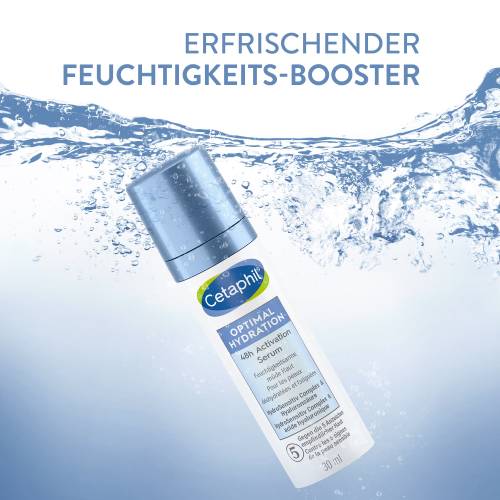Das Cetaphil® Optimal Hydration 48 h Activation Serum mit innovativem HydroSensitivTM Complex verstärkt die aktive Feuchtigkeitsversorgung, stärkt die Hautbarriere und beruhigt empfindliche und trockene Haut. Die leichte Textur zieht schnell ein und versorgt die Haut für 48 Stunden mit intensiver Feuchtigkeit. Das Gesichtsserum erfrischt müde sofort und verfeinert das Hautbild. Die optimale Ergänzung zur Cetaphil® Optimal Hydration belebenden Tagescreme.