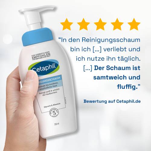Der Cetaphil® Reinigungsschaum ist dank seiner sanften Inhaltsstoffe besonders hautberuhigend und kann morgens und abends angewendet werden. Wichtig ist, die Haut im Anschluss mit einer feuchtigkeitsspendenden Gesichtscreme zu pflegen. Nach der Reinigung am Abend, empfiehlt es sich, eine regenerierende Nachtcreme aufzutragen.