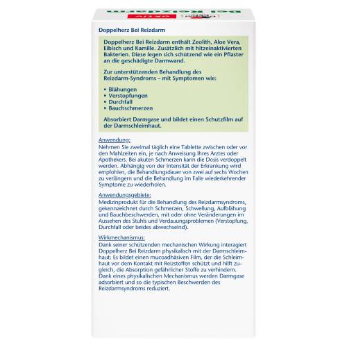 Das Medizinprodukt Doppelherz Bei Reizdarm enthält das Mineral Zeolith in Kombination mit Kamillen- und Eibischextrakt sowie Aloe Vera und wird zur unterstützenden Behandlung des Reizdarm-Syndroms mit folgenden Symptomen angewendet: