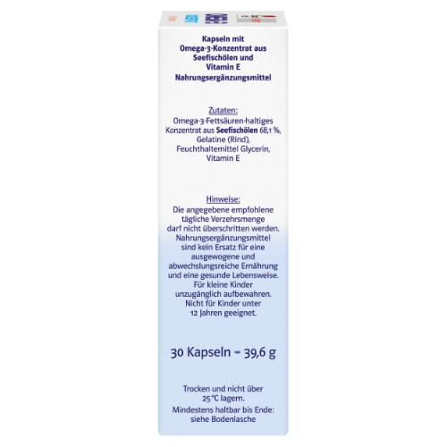Die Doppelherz system-Kapseln enthalten 900 mg Omega-3-Konzentrat aus Seefischölen, das 60 % an Omega-3-Fettsäuren enthält.