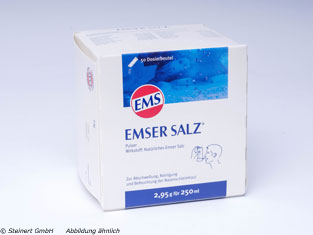 Emser Salz lässt einen akuten und chronischen Schnupfen schneller abklingen und fördert die Genesung nach Operationen an den Nasennebenhöhlen. Es ist ein Gemisch aus vielen verschiedenen Salzen, wie z.B. Natrium, Kalium, Magnesium, Calcium oder Chlorid. Diese Salzmischung hilft die Schleimhautoberfläche der Nase feucht zu halten und zähes Sekret auf zu lösen. Außerdem lässt sie die winzigen Härchen im Riechorgan schneller schlagen, so dass sie den dickflüssigen Auswurf oder schädliche Erreger rascher abtransportieren.