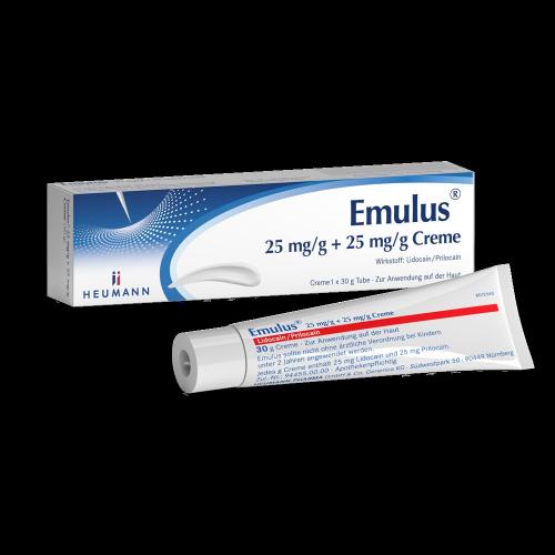 Emulus® ist eine Creme zur lokalen Betäubung der Haut. Emulus kann vor medizinischen Maßnahmen (z. B. Impfungen), Tätowierungen und kosmetischen Nadel- und Laserbehandlungen (z. B. Laser-Haarentfernung) verwendet werden, um eine weitgehend schmerzfreie Behandlung zu ermöglichen.