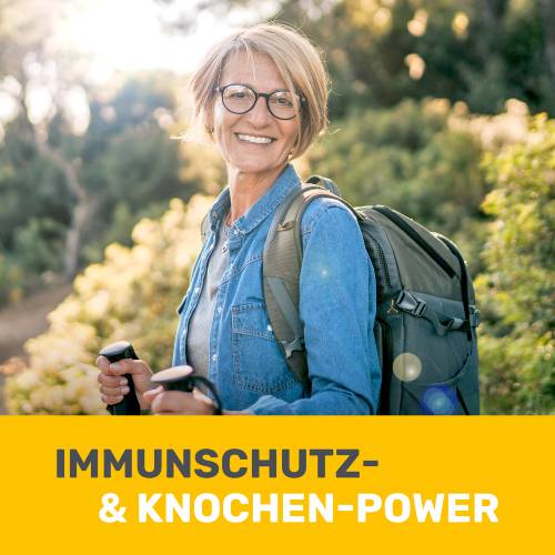 Seine zahllosen wichtigen Aufgaben kann Vitamin D3 jedoch nur in einem ausgewogenen Umfeld erfüllen: So gibt es Proteine, deren Verfügbarkeit von D3 erhöht wird, Vitamin K2 als sogenannten „Cofaktor“ für die Aktivierung bestimmter an der Knochenbildung beteiligten Proteine benötigen. So tragen die Vitamine D und K zum Erhalt normaler Knochen bei.