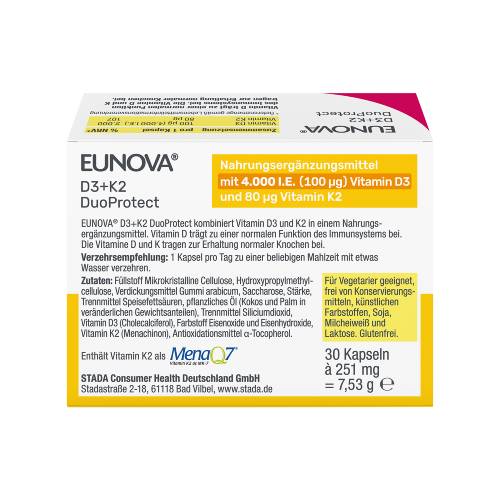 EUNOVA DuoProtect D3+K2 4000 I.E./80 μg Kapseln