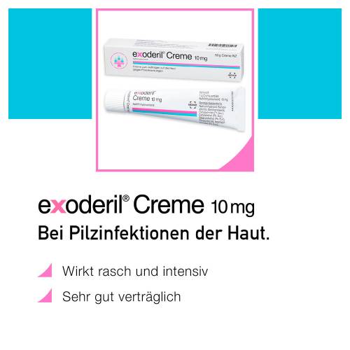 Exoderil besitzt mit Naftifin einen einzigartigen Wirksoff, der fungizid (pilzabtötend) gegenüber Dermatophyten und Schimmelpilzen wirkt und dennoch ausgezeichnet verträglich ist