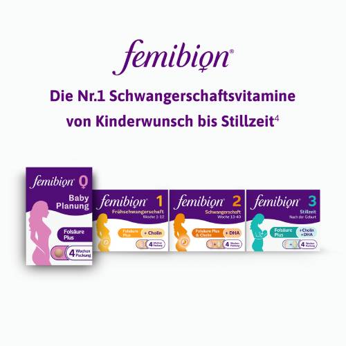 • JEDERZEIT STARTEN: Mit Femibion® 0 kann an jedem Tag des Zyklus begonnen werden, auch an fruchtbaren Tagen; Empfehlung: Beginn der Nahrungsergänzung durch Folsäure mind. 1 Monat vor Schwangerschaft