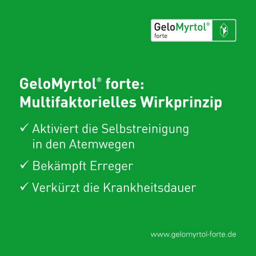 Pflichttexte GeloMyrtol® forte GeloMyrtol® forte. Anw.: Zur Schleimlösung u. Erleichterung des Abhustens b. akuter u. chron. Bronchitis. Zur Schleimlösung b. Entzündungen der Nasennebenhöhlen (Sinusitis). Z. Anw. b. Erwachsenen, Jugendlichen u.