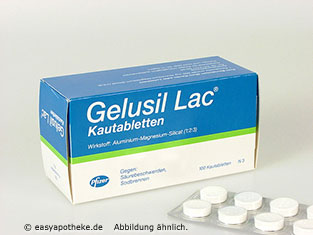 Gelusil Lac Kautabletten enthalten den arzneilich wirksamen Bestandteil Aluminium- Magnesium- Silicat. Dieser wird bei Säurebeschwerden wie Sodbrennen oder saurem Aufstoßen eingesetzt. Magen- und Zwölffingerdarmgeschwüren heilen mit der unterstützenden Therapie von Gelusil Lac Kautabletten schneller ab. Der Wirkstoff neutralisiert die Magensäure. Außerdem bildet er einen gleichmäßigen Schutzfilm auf der Darmschleimhaut und adsorbiert die Toxine und Gase, die eine Reizung der Darmschleimhaut bewirken.