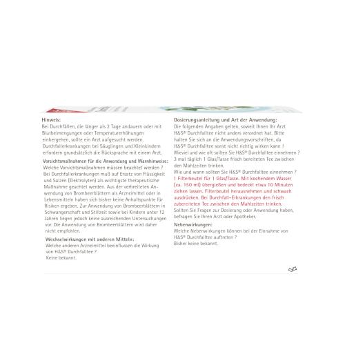 1 Filterbeutel für 1 Glas/Tasse. Mit kochendem Wasser übergießen und bedeckt etwa 10 Minuten ziehen lassen. Filterbeutel herausnehmen und schwach ausdrücken. Bei Durchfallerkrankungen den frisch zubereiteten Tee zwischen den Mahlzeiten trinken. Bei Durchfällen, die länger als 2 Tage andauern oder mit Blutbeimengungen oder Temperaturerhöhungen einhergehen, sollte ein Arzt aufgesucht werden. Durchfallerkrankungen bei Säuglingen und Kleinkindern erfordern grundsätzlich die Rücksprache mit einem Arzt.
