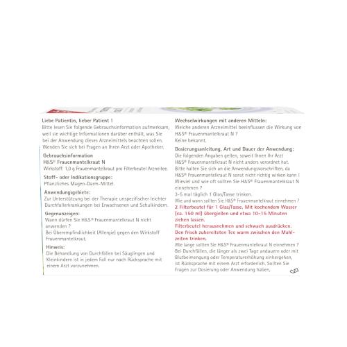 Die im Frauenmantel enthaltenen Gerbstoffe können durch Reaktion mit Eiweissbestandteilen der Haut eine Schicht auf der (Schleim-)Haut bilden, die weniger wasserdurchlässig ist und den Körper auf diese Weise vor zu hohem Wasserverlust schützt. Diese Schutzschicht verhindert ausserdem, dass Bakterien und andere Keime in kleine Verletzungen der Haut eindringen können. Die Inhaltsstoffe zeigen ausserdem eine Wirkung bei Durchfall.