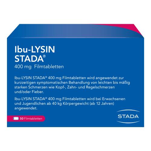 Ibu-LYSIN STADA® 400 mg Filmtabletten enthält den Wirkstoff Ibuprofen-Lysin. Lysin ist eine lebensnotwendige Aminosäure, welche der Körper selbst nicht herstellen kann. Nur durch Nahrung, wie z. B. tierische Eiweißprodukte, kann Lysin in den Körper gelangen.