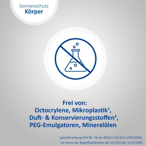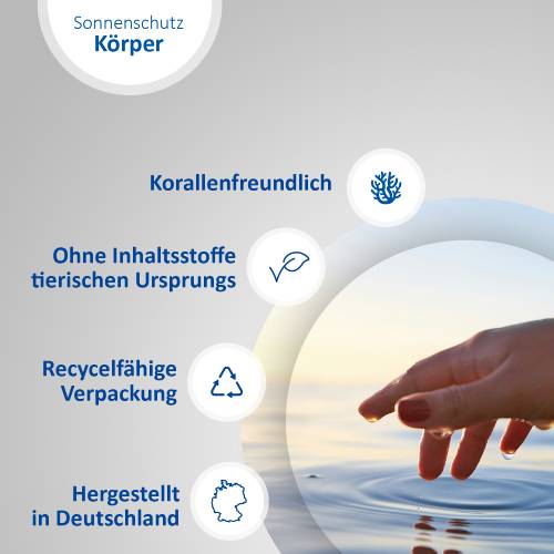 Dank der emulgatorfreien Rezeptur ist das Sonnenschutz-Spray besonders gut verträglich und sorgt für ein leichtes und angenehmes Hautgefühl. Zudem pflegt es die Haut und spendet intensiv Feuchtigkeit mit Hyaluronsäure. Das Spray ist wasserfest und korallenfreundlich, was es zum idealen Begleiter für den nächsten Urlaub macht. Die Verpackung ist recycelbar (muss nicht getrennt entsorgt werden) und schützt somit nicht nur die Haut, sondern trägt auch zur Nachhaltigkeit bei.