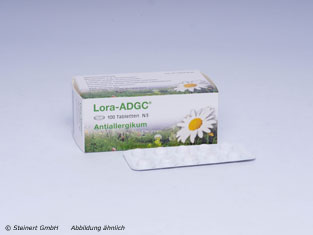 Die Lora ADGC Tabletten werden zur Behandlung der Beschwerden aufgrund einer allergischen Reaktion des Körpers angewendet. Die Tabletten enthalten das Antihistaminikum Loratadin. beim Histamin handelt es sich um den Hauptauslöser einer Allergie. Der Wirkstoff ist in der Lage die Bindung des Histamins an die Rezeptoren zu verhindern, wodurch auch die allergischen Reaktionen gar nicht oder nur in abgeschwächter Form auftreten. Die Lora ADGC Tabletten wirkt schnell und langanhaltend, so dass die Einnahme einer Tablette am Tag ausreicht.