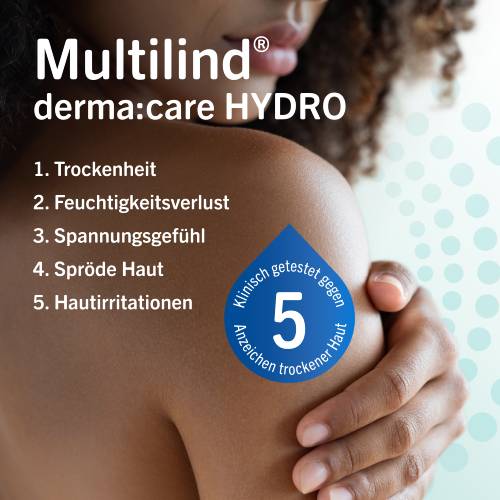Die Hautpflegeserie Multilind® derma:care HYDRO wurde speziell entwickelt, um die 5 häufigsten Anzeichen trockener Haut zu bekämpfen sowie die Beschaffenheit und das Hautgefühl zu verbessern. Sie dient zur täglichen Pflege trockener und sehr trockener Haut sowie zur Spezialpflege besonders trockener und rauer Hautareale.