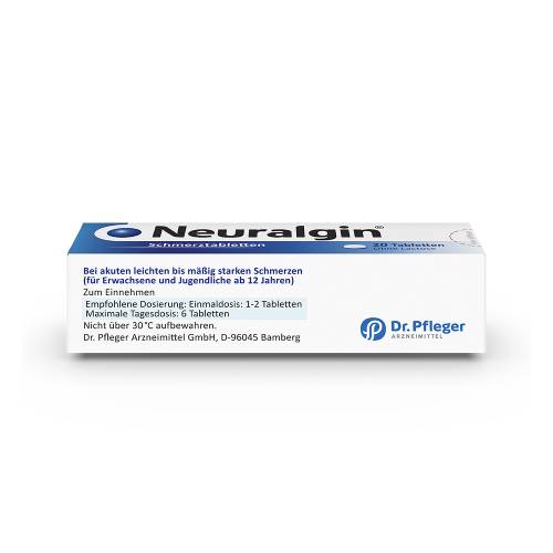Die Neuralgin Tabletten werden zur schnellen Linderung von mittelstarken Schmerzen angewendet.  Die Tabletten enthalten eine Kombination der drei Wirkstoffe Acetylsalicylsaeure, Paracetamol und Coffein. Sowohl die Acetylsalicylsaeure als auch das Paracetamol besitzen Schmerzstillende, fiebersenkende und entzuendungshemmende Eigenschaften. Das zusaetzlich enthaltene Coffein sorgt dafuer, dass die beiden Wirkstoffe schneller und intensiver wirken. Zusaetzlich wird durch das Coffein das Herz-Kreislauf-System angeregt, wodurch Muedigkeit verschwindet. Die Neuralgin Tabletten sind in der Lage Kopf-, Ruecken- und Gelenkschmerzen zu mindern.
