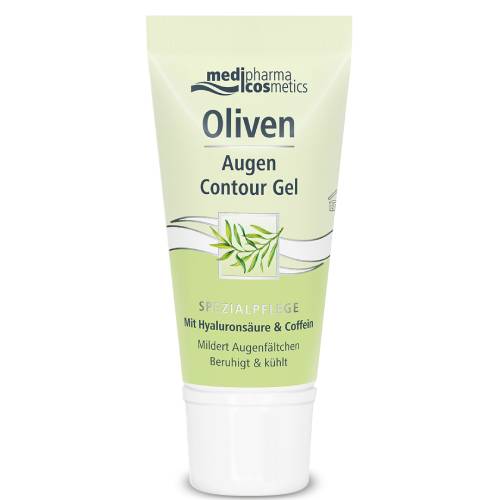 Oliven Augen Contour Gel mit Olivenextrakt, Hyaluronsäure und Coffein versorgt die Haut mit ausreichend Feuchtigkeit, mildert Augenfältchen und beruhigt die empfindliche Haut im Augenbereich.