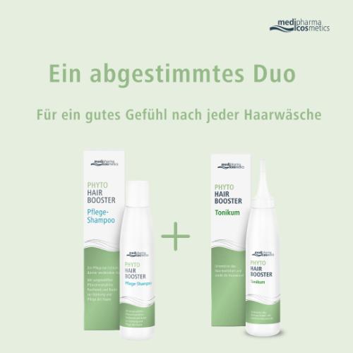 Für eine abgestimmte Pflege empfiehlt sich ergänzend das Phyto Hair Booster Tonikum von medipharma cosmetics. Nach der Haarwäsche direkt auf die Kopfhaut aufgetragen und nicht ausgespült, kann es die Haarwurzel gezielt stärken und das Haarwachstum zusätzlich unterstützen – ohne zu beschweren.