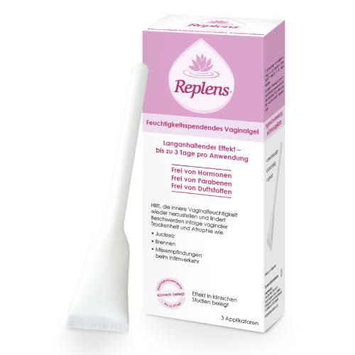 Mit seiner bioadhäsiven Gel-Formulierung legt sich Replens™ wie ein Schutzfilm für bis zu 3 Tage auf die trockene vaginale Schleimhaut und versorgt sie langanhaltend mit Feuchtigkeit. Der vaginale Feuchtigkeitshaushalt wird stabilisiert und die Geschmeidigkeit und Gleitfähigkeit der Vaginalhaut erhöht. Unangenehmen Beschwerden wie Brennen, Juckreiz und Missempfindungen (auch beim Intimverkehr) bekämpft Replens™ schnell und zuverlässig.