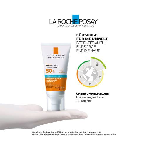 Die La Roche Posay Anthelios Hydratisierende Creme UV Mune 400 LSF 50+ (ehem. Anthelios Hydratisierende Creme LSF 50+, PZN: 13868757) ist eine feuchtigkeitsspendende Sonnencreme für trockene, empfindliche Haut mit sehr hohem Schutz vor UVA- & UVB-Strahlen. Schützt vor Sonnenbrand, lichtbedingten Hautschäden und Sonnenunverträglichkeiten wie Sonnenallergie und vor vorzeitiger, lichtbedingter Hautalterung. Für alle Hauttypen geeignet. Die Formel ist ohne Duftstoffe und spendet 24h Feuchtigkeit, pflegt und schützt trockene Haut. Läuft nicht in die Augen & brennt nicht in den Augen. Ultra-resistent vor Wasser, Schweiß und Sand. UVMune 400 steht für Mexoryl 400, unseren wirksamsten Filter gegen schädliche ultra-lange UVA-Strahlen bis 400nm.