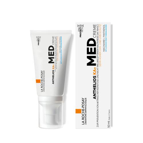 Die hochwirksame Sonnencreme ANTHELIOS KA+ MED Creme zur Prävention aktinischer Keratose (AK) und nicht-melanozytärem Hautkrebs (NMSC) schützt die Haut dank MEXORYL SX und MEXORYL XL vor UVA- und UVB-Strahlen. So hilft die Sonnenpflege bei der Vorbeugung von sonnenbedingten DNA-Schäden. Die hochwirksame Sonnencreme ANTHELIOS KA+ MED enthält keine Duftstoffe. Die feuchtigkeitsspendende Formel mit Niacinamid und Panthenol schützt die Hautbarriere. Anthelios KA+ MED dient der Vorbeugung aktinischer Keratosen (AK) und nicht-melanozytärem Hautkrebs (NMSC).