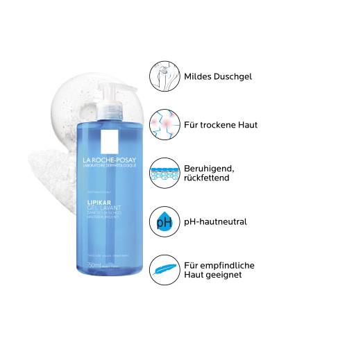 La Roche Posay Lipikar Gel Lavant Hautberuhigendes, sanftes Duschgel für trockene, empfindliche Haut mit Niacinamid