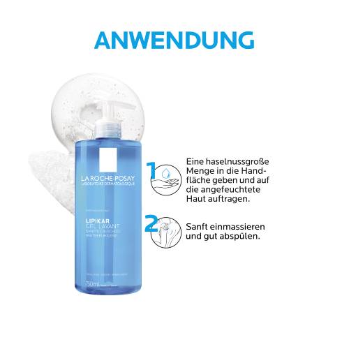 Eine haselnussgroße Menge LIPIKAR Gel Lavant auf die Handfläche geben. Auf die zuvor angefeuchtete Haut auftragen, sanft aufmassieren. Abspülen. Wichtige Hinweise: Nicht verschlucken. Darf nur unter Aufsicht in die Hände von Kleinkindern gelangen. Bei Kontakt mit den Augen diese gründlich ausspülen.