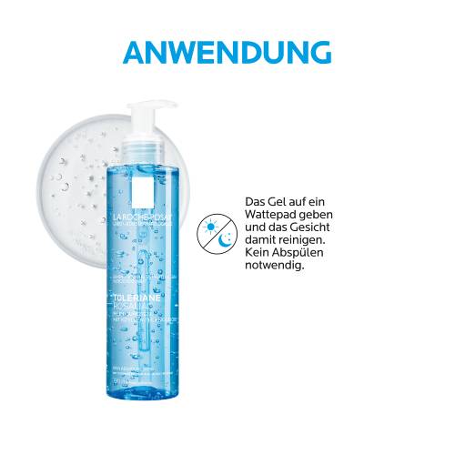 Anwendungshinweis: Das Reinigungsgel TOLERIANE ROSALIAC täglich morgens und/oder abends anwenden. Dazu den Gesichtsreiniger mit einem Wattepad oder mit den Fingerspitzen auf die Haut von Gesicht, Hals und Dekolleté auftragen. Mit kreisenden Bewegungen das Reinigungsgel verteilen und mit dem Wattepad vorsichtig abwischen. Ein weiteres Abspülen mit Wasser ist nicht notwendig. Das TOLERIANE ROSALIAC Reinigungsgel enthält keinen Alkohol und Duftstoffe. Es eignet es sich optimal bei empfindlicher und zu Rosazea oder Couperose neigender Haut. Dank des enthaltenen Thermalwassers wird die Haut beruhigt und geglättet.