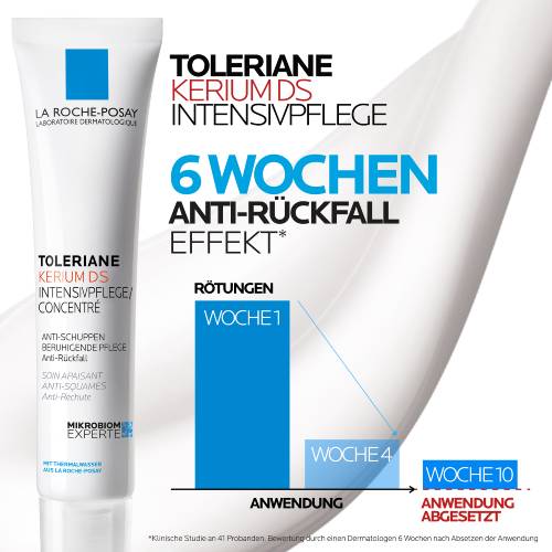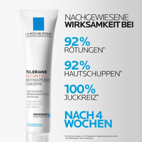 Zu Seborrhoische Dermatitis neigende Haut ist geprägt von fettigen Schuppen und Rötungen. Grund dafür können eine Sebum-Überproduktion, Malassezia-Überschuss und ein aus dem Gleichgewicht geratenes Mikrobiom sein. Die Creme gegen schuppige Haut TOLERIANE Kerium DS Intensivpflege setzt genau dort an: Zink PCA reduziert die Sebum-Produktion und hemmt die Bakterienvermehrung. Piroctone-Olamine reduziert das Malassezia-Wachstum und mildert Juckreiz und Brennen auf der Haut. Dank Aqua Posaae Filiformis, welches aus dem La Roche Posay Thermalwasser gewonnen wird, wird das Mikrobiom der Haut wieder ins Gleichgewicht gebracht und so vor Rückfällen gestärkt.