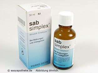 Die Sab Simplex Suspension wird zur mechanischen Behandlung von gasbedingten Beschwerden im Magen Darm Bereich angewendet. Die Suspension enthält den Wirkstoff Dimeticon. Durch den Wirkstoff werden die eingeschlossenen Luftbläschen rein physikalisch aufgelöst. Die bei diesem Prozess freiwerdenden Gase können nun auf natürlichem Weg entweichen oder von der Darmwand aufgenommen werden. Die Sab Simplex Suspension sorgt dafür, dass der Druck auf die Darmwand nachlässt und dadurch die blähungsbedingten Schmerzen gelindert werden.