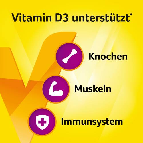 1Vitamin D unterstützt die normale Funktion des Immunsystems und trägt zum Erhalt gesunder Knochen und einer normalen Muskelfunktion bei.