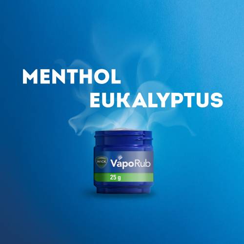 Egal, was Sie bei leichten oder stärkeren Erkältungen tun, WICK VapoRub Erkältungssalbe gehört bei Erkältung immer dazu! Das Erkältungsmittel lindert Symptome eines grippalen Infekts effektiv. Es ist wirksam bei Husten, Schnupfen, Heiserkeit und Verschleimung.  Mit der WICK Vaporub Erkältungssalbe kann die ganze Familie wieder besser durchatmen.